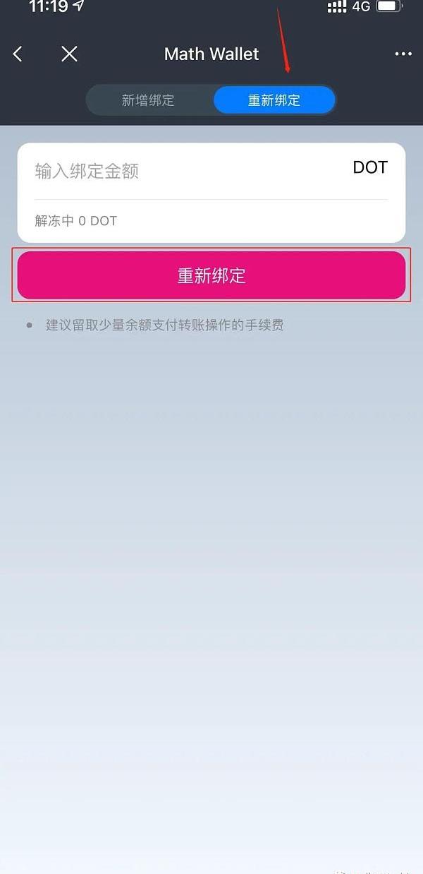 若想充值绑定正在解除质押的DOT,亦可点击重新绑定