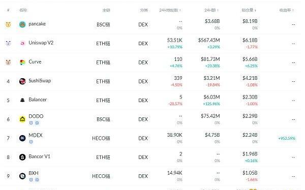 过去24小时去中心化交易所的交易量数据来源:Debank