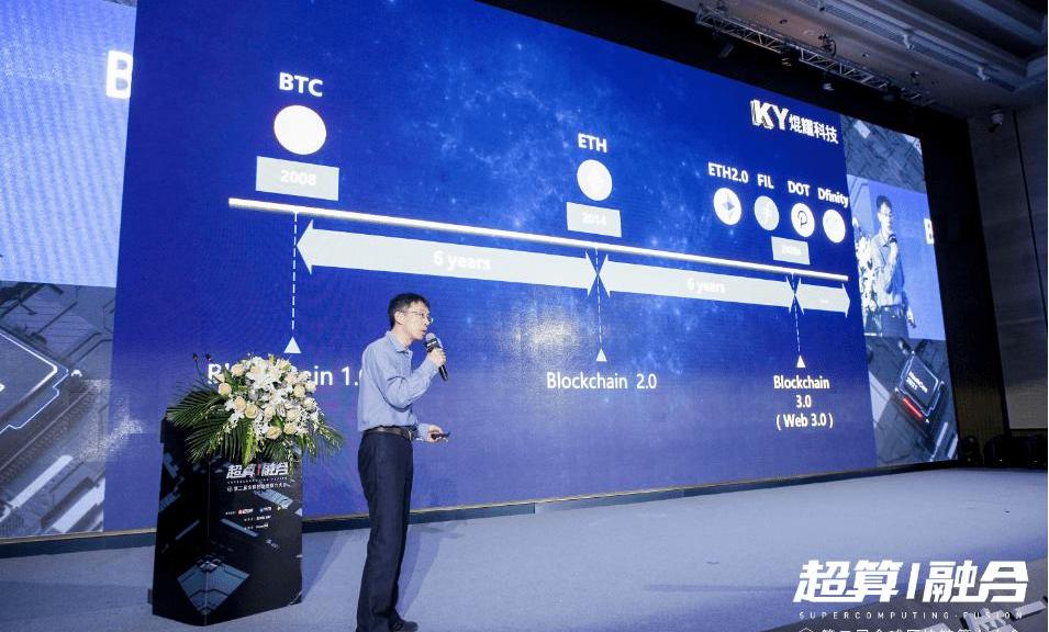 如果看整个区块链的发展历程,你可以看到6年一个周期,这样的一个历程,比特币是2008年诞生,到2024年以太坊诞生,从区块链的1.0到2.0,比特币作为区块链只是很简单的一个应用作为价值的存储而已,而以太坊开始使用智能合约。6年过后,到2020年我们会发现在区块链取得了很多的技术突破,包括跨链,基于区块链的存储,有整个计算的扩展等等,那么这个时候区块链3.0就代表着web3.0的起步。朱嘉明在主题演讲的时候提到2020年整个矿业和数字经济的发展是一个分水岭,那么在2020年到2021年之间,相对来说算力在2020年前后是不一样的,这个时间段去做匹配的话,刚好上链这个时间,以区块链为基础的存储的挖矿为起点,我们进入web3.0的时代和挖矿的整个演变。