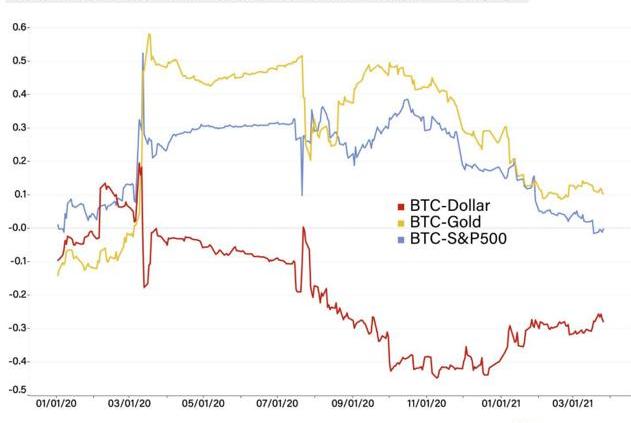 作为避险资产的另外一个基本要求是它同其它主流资产的弱关联度。这个关联度越小,它作为避险资产的价值就越来越高。根据Coindesk最近的一份报告,比特币同黄金和S&P500的关联度现在越来越趋向于为0,同美元也开始出现负相关。因此在与其它资产的关联度方面,比特币越来越具有避险价值。