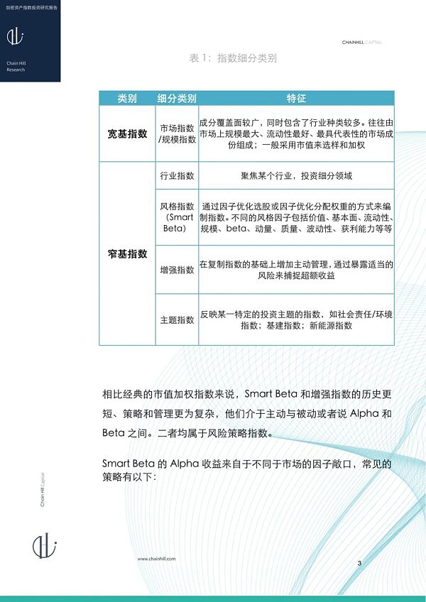 本文对各类加密资产指数进行了详细分析和阐述,通过统计数据对不同类别的加密资产指数进行研究和论证,从而得出不同于传统金融市场指数投资,在介入适当主动管理的情况下,加密资产指数投资更有可能提供比主动基金更高的超额收益的结论。