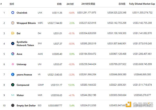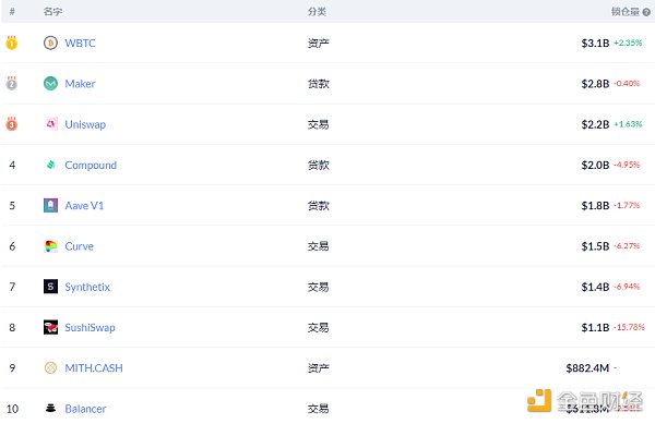 DeFi项目锁定资产前十排名及锁仓量,数据来源:Debank