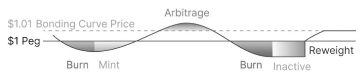 FEI使用了一个联合曲线以及“直接激励”代币模型来维持一个流动性市场,其目的是让ETH/FEI的交易价格能够接近ETH/USD的市场价格。