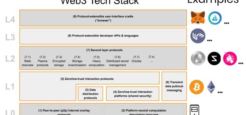以太坊、比特币和其它区块链都是Web3技术栈的Layer1。对于比特币来说,大多数是在Layer1上进行的,而以太坊大部分则是在Layer2,即协议和智能合约层。