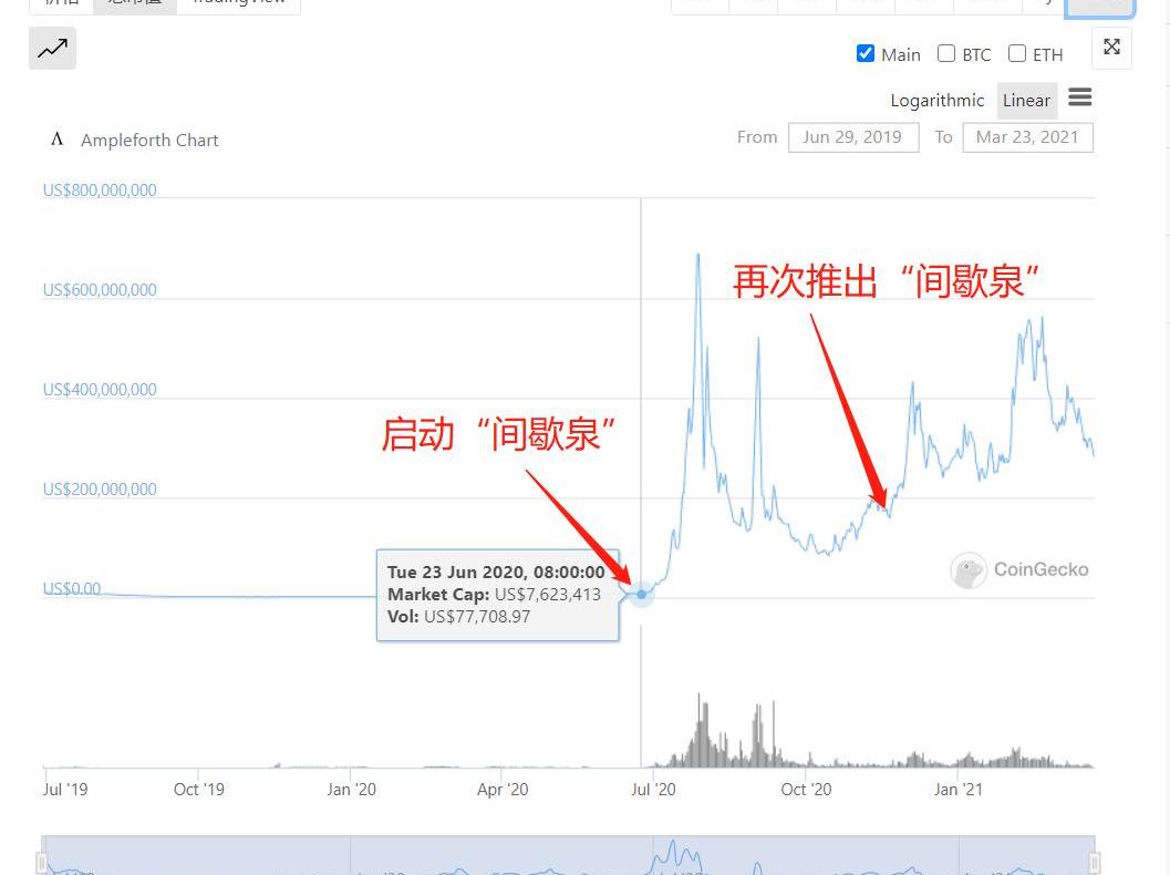 回顾去年6月份和11月份AMPL的两波小爆发,背后原因均和其推出“间歇泉”挖矿计划有关。该计划让AMPL在uniswap等DEX平台做市,官方会给予做市奖励。