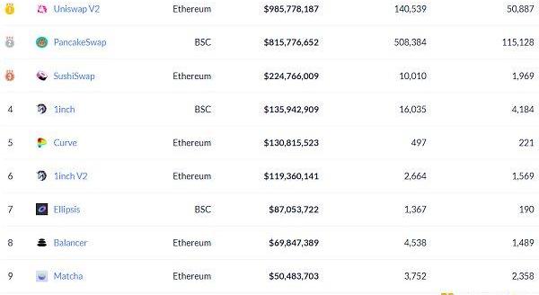 过去24小时去中心化交易所的交易量数据来源:Debank