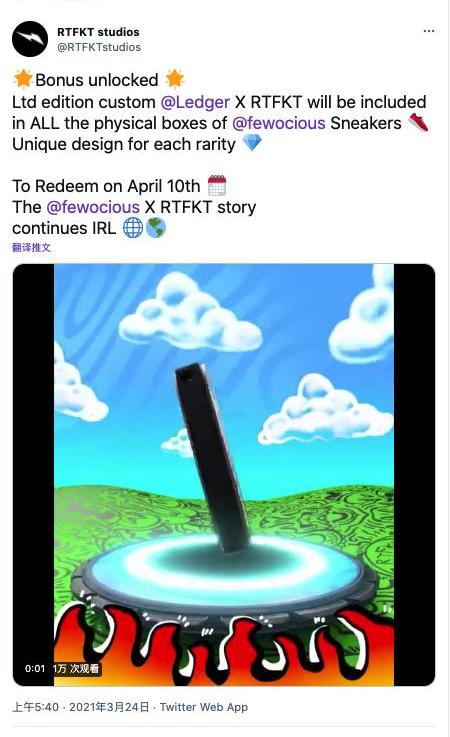 RTFKT将为其与FEWOCiOUS联名发售的实体运动鞋的买家赠送Ledger硬件钱包!