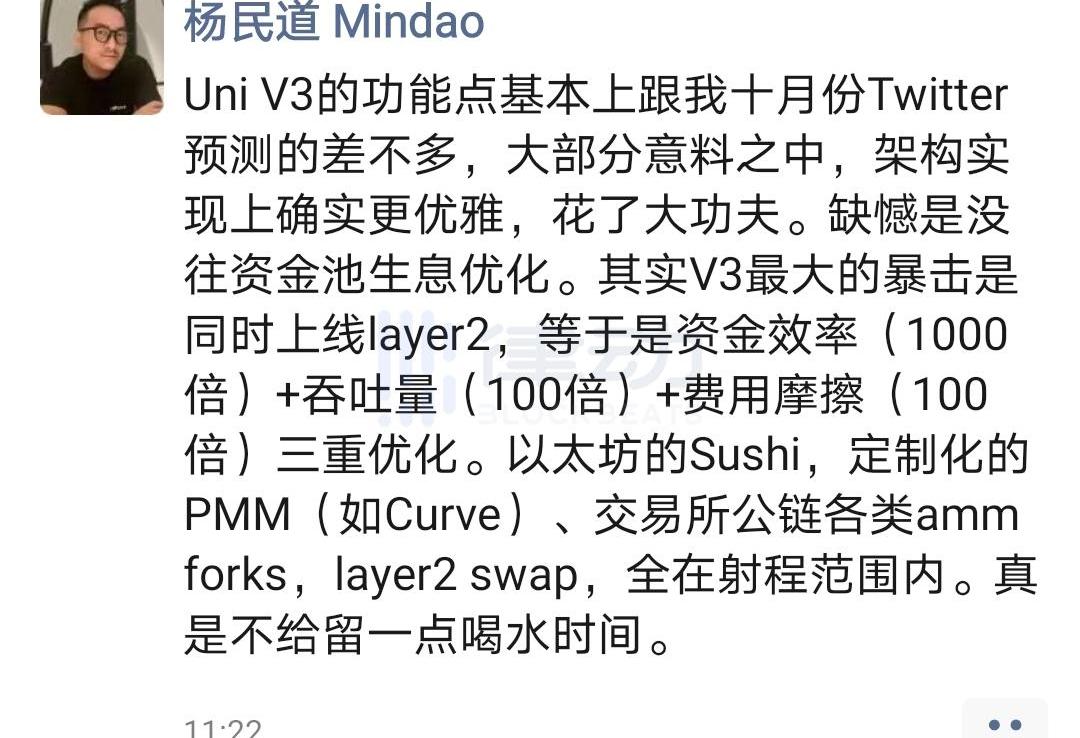 整个行业对Uniswapv3期盼已久,在文档公布后,众多加密从业者也纷纷对此发表观点。