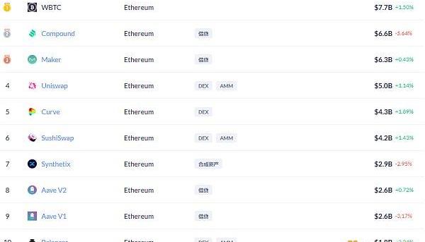 锁仓量排名前十的借贷平台排名来源:DeFibox