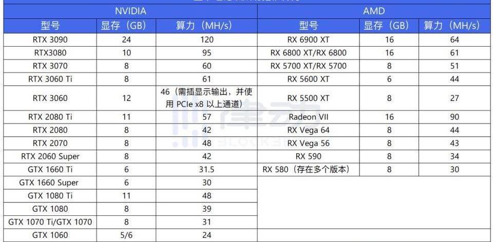 目前,DAG文件已经大于4GB。因此,进行以太坊挖矿需要准备一张显存至少5GB的显卡。由于DAG文件的增长,5G显存显卡已经无法在Win10系统下进行以太坊挖矿,需切换至Win7或挖矿专业系统。律动列出了目前普通玩家可能持有并可用于挖矿的显卡: