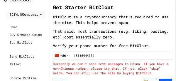 随后会让创建个人信息,由于手机号无法验证,只能选择购买$55的BitClout来激活。