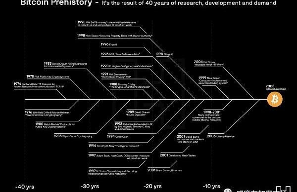 你以为的比特币是中本聪的神奇创造,但殊不知它是过往四十年人类探索的集大成者。