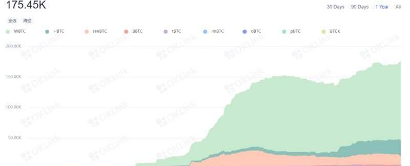 比特币终将取代黄金吗?黄金已经存在上千年,其历史地位在传统社会确实已经无法撼动。但是,人类社会正在进行一场互联网大迁移,人类正在进入数字化时代。我们很多生活方式其实已经开始迁移到互联网上。人工智能、物联网、云计算、区块链等新技术正在飞速发展,正在快速重塑社会。在这个过程中,大数据成为人类新的生产资料,去中心化协作正在改变人类原有的生产关系和方式,比特币作为数字化时代原生资产自然也比黄金更适合充当价值储备。在去中心化金融的发展过程中,BTC天然充当了价值储备的角色。下图展示了DeFi中BTC的锁仓量变化图: