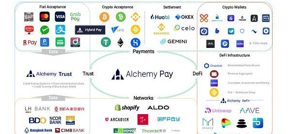 AlchemyPay为美股千亿电商服务平台Shopify加密支付收银台开发者之一,Alchemy提供底层技术和支付的整体解决方案,LTC,BNB等其他的数字货币直接提供上层的支付通证。