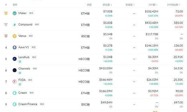 锁仓量排名前十的借贷平台排名来源:DeFibox