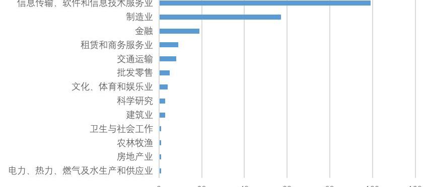 3、所属行业多样,主要分布在信息传输、制造业和金融业