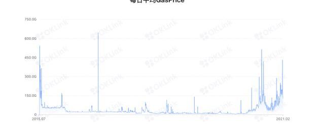 根据欧科云链的数据,进入2021年以来,以太坊链上每日平均Gas费日益走高,2月23日,以太坊日均Gas费达到431.97Gwei,创下年内最高点。Gwei是以太坊的Gas费计量单位,1ETH相当于10?Gwei。2月23日当天,蜂巢财经尝试在Uniswap进行USDT与ETH的兑换时,钱包建议Gas费为0.13ETH,时值约218美元。