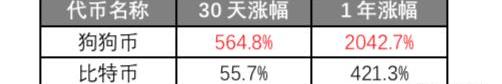 作为新晋世界首富,ElonMusk在推特上拥有4700万粉丝,影响力毋庸置疑。1月29日,ElonMusk仅是将自己在推特个人签名改为“#bitcoin”,就推动比特币价格暴涨10%,狗狗币更是如此。随着ElonMusk多次在推特上“喊单”狗狗币,其价格更是水涨船高。下面这个表格比较了比特币和狗狗币的上涨情况: