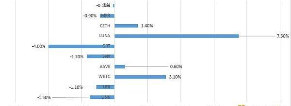 市值前十币种涨跌幅,金色财经制图,数据来源Coingecko