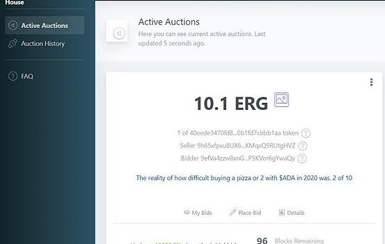 ErgoAuctionHouse是一个去中心化的拍卖行,安全、易用。通过ErgoAuctionHouse可以非常方便买卖Ergo上的代币、艺术品或NFT等。