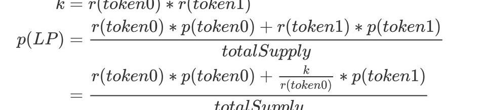 其中r(token)是指Pair中代币的reserve数量,p(token)是指代币的价格,totalSupply是指LP的总量。这个公式貌似没有问题,但在实践中却遇到了大问题。