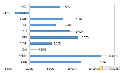 市值前十币种涨跌幅,金色财经制图,数据来源Coingecko