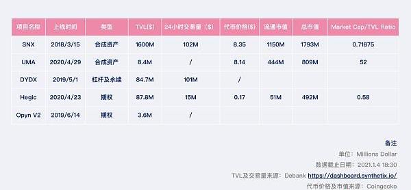 2020年是Defi爆发元年,借贷、AMM赛道等均已出现较为明确的龙头和第一梯级项目。衍生品赛道则略显孤独,仅仅有SNX扛起合成资产的大旗。