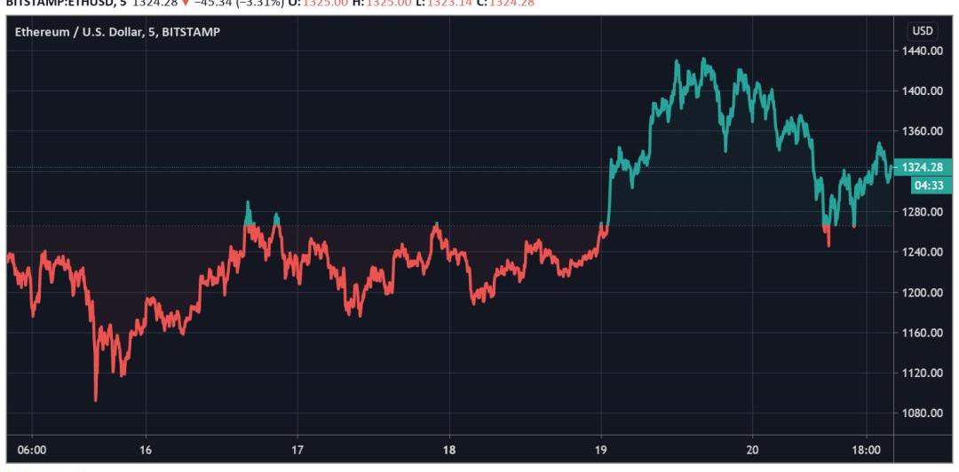 但是自从周二打破记录以来,以太坊的价格一直在下滑,截至发稿时,加密货币交易价格为1,318.51美元,当天下跌4.60%。