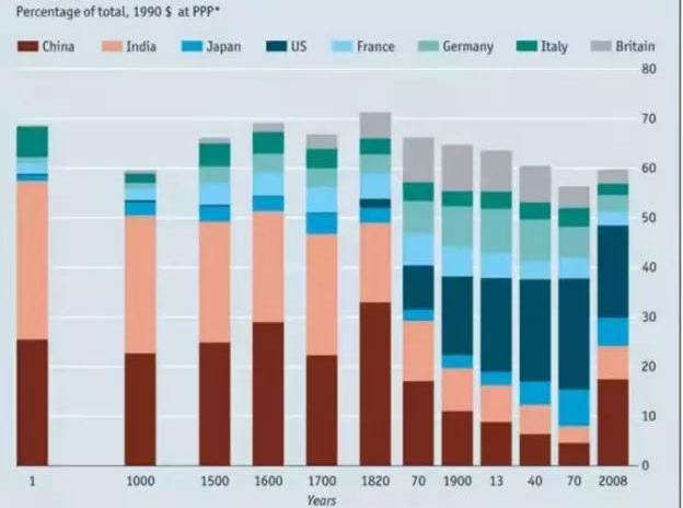 数据分析:美国在1890年GDP已经超过英国的GDP,但是当时英国还是英帝国由于还有殖民地,殖民地的GDP都算在英帝国身上。美国GDP超过英帝国GDP是1916年,后来由于许多殖民地独立,英帝国在1926年成为英联邦。但是美元成为世界储备货币却发生在1944年,如果以1890年开始算,美国经历54年才发生世界储备货币的改变。而在1944年,美国GDP已经是英国的2倍,而在以前,英镑在是世界储备货币100年。这表示即使美国GDP不再是世界第一,美元仍然可能是世界储备货币很长的一段时间,这种延迟效应以前发生在英镑和美元的转换期间。