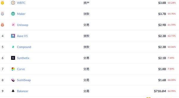 DeFi项目锁定资产前十排名及锁仓量,数据来源:Debank