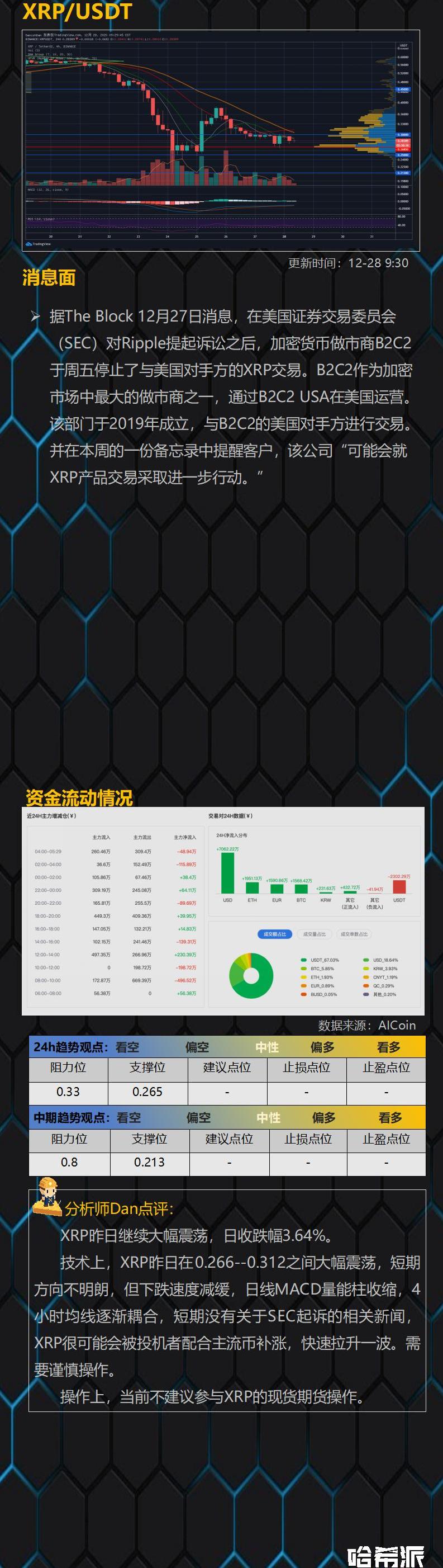 昨晚至今,BTC在8200美元-8900美元震荡调整,处于近十天的低位。根据火币交割合约数据,BTC季度合约成交额下降,持仓量随着价格下跌后出现了少许反弹,精英多头占比稳定,季度合约贴水收窄。近两天BTC大跌出现大幅放量,随着目前低位震荡的成交量减少,持仓少许回升,市场恐慌情绪有些缓解,8000美元一带的支撑力度有待进一步观察。