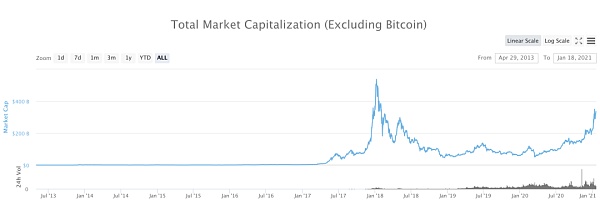 “Alt Season(山寨季)”,加密货币市场周期的一部分,诸多山寨币对比特币汇率飞速上涨,最典型的例子就是,2017年12月下旬至2018年1月初,山寨币牛市,群魔乱舞。