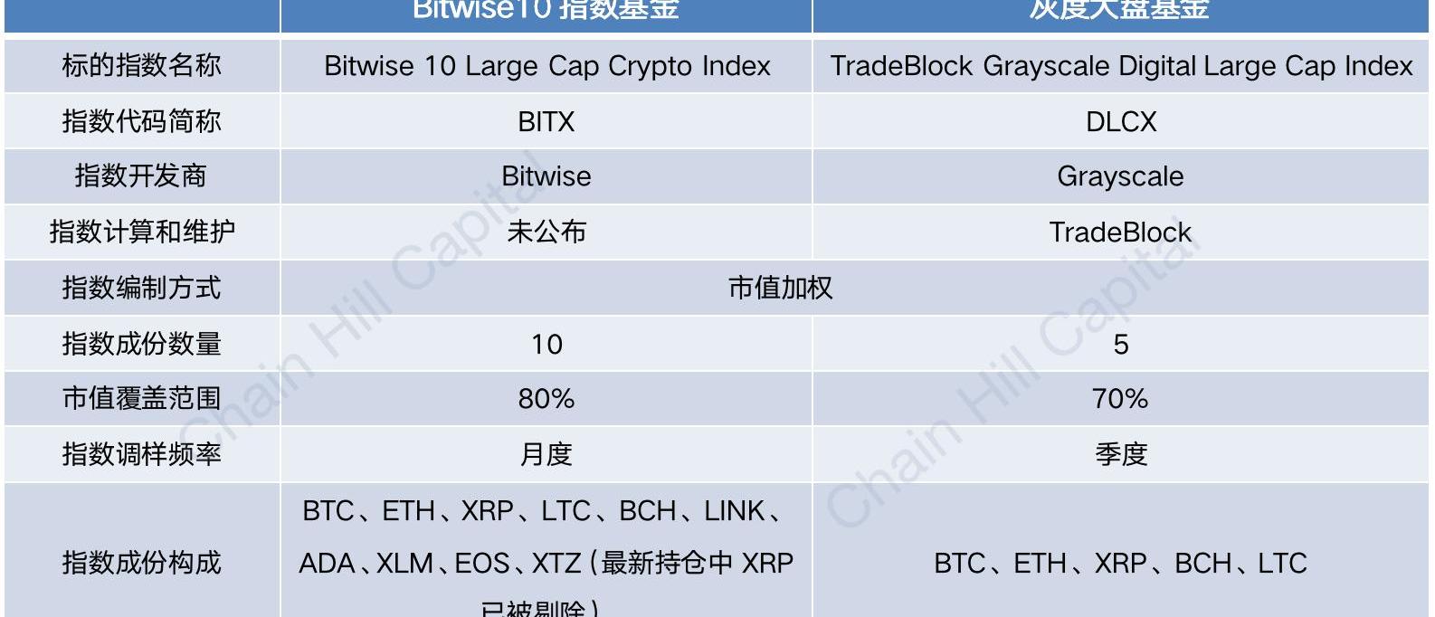 Btwise10加密指数基金与灰度大盘基金标的指数对比制图:ChainHillCapital