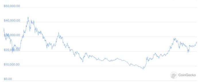 2.价格一直保持高位波动,今天的价格处于25,000美元以上,是11月5日低点的3倍以上