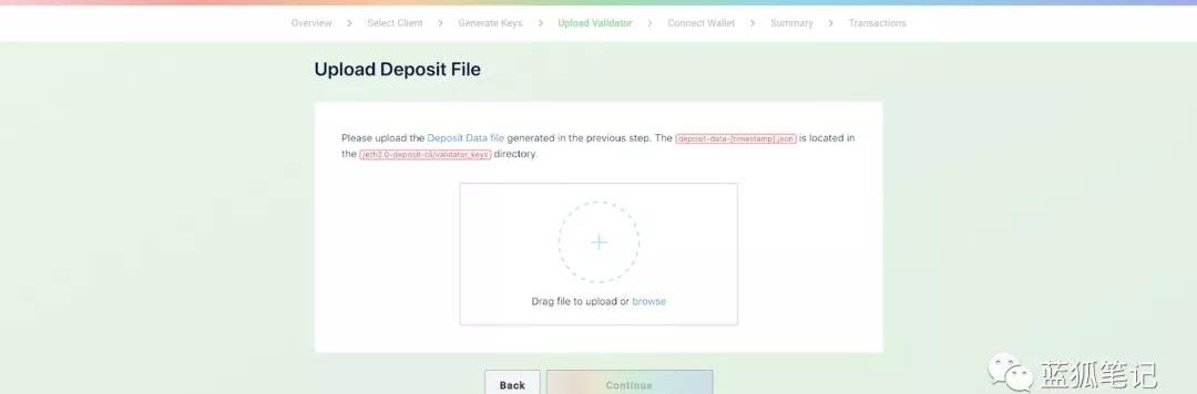 差不多就要完成了!下一步是上传你在上一步生成的deposti.json文件。