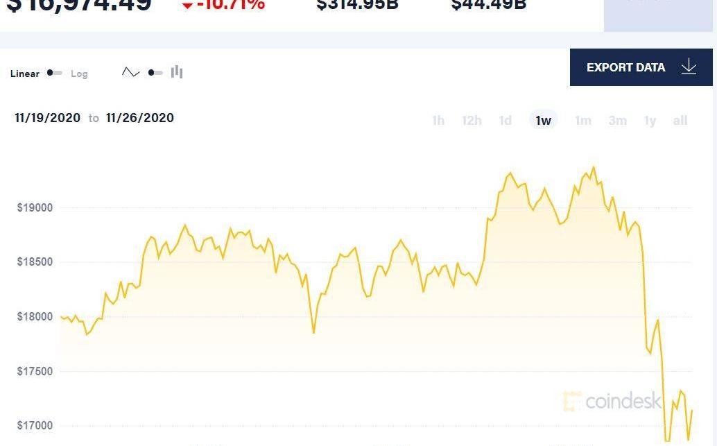 周四,比特币暴跌至10天以来的最低水平,给其急剧上涨的势头踩了刹车,并引发了对数字货币的抛售。日内跌幅10.8%,距离周三触及的三年高点19,521美元大幅回调近3000美元,令很多投资者措手不及。