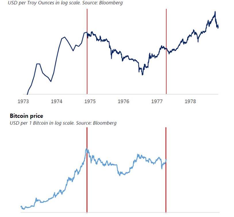 不论我们是否在1970年代,但由于需求的增加以及与黄金相关性的下降,比特币很可能会摆脱这样剧烈回调的波动。