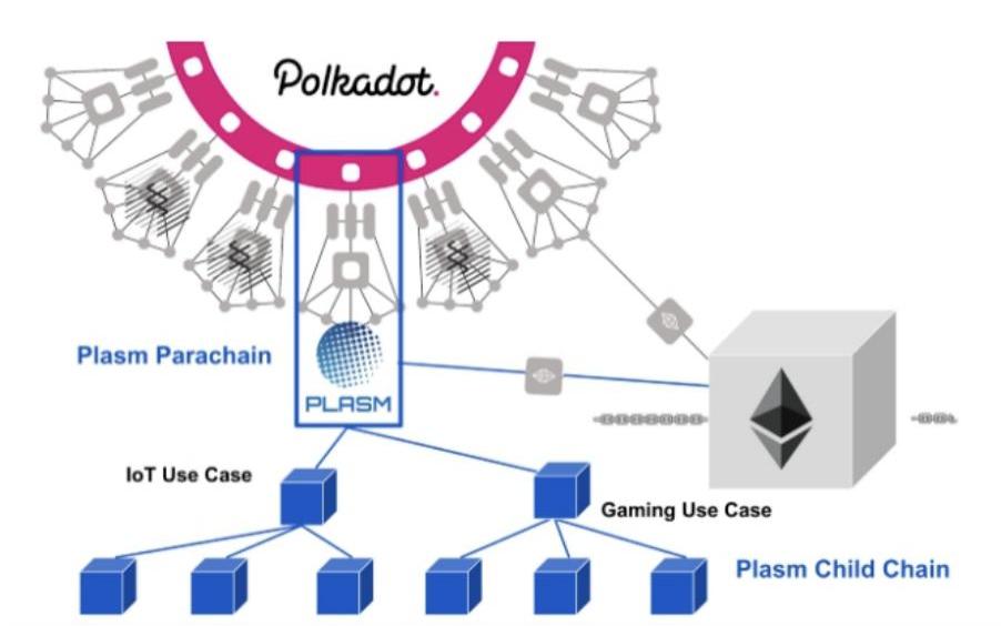 3.为波卡2.0提供技术支持。Plasma是一个有层次结构的可扩展性解决方案,而Plasm则是该项目的名称。目前以太坊上有Omisego也在探索这个技术,提高可拓展性。同时它也是一个框架,可以创建将主链作为信任层的子链。波卡2.0中会使用到Plasma技术,在波卡2.0中,中继链会和其中一条链进行互联,提供无限的可扩展性。