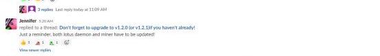北京时间11月24日01:34,Filecoin项目工作人员Jennifer再次在slack上提醒广大矿工,请尽快升级至lotusv1.2.0版本,Filecoin网络将在区块高度达到265200之时升级到Lotusv1.2.0。