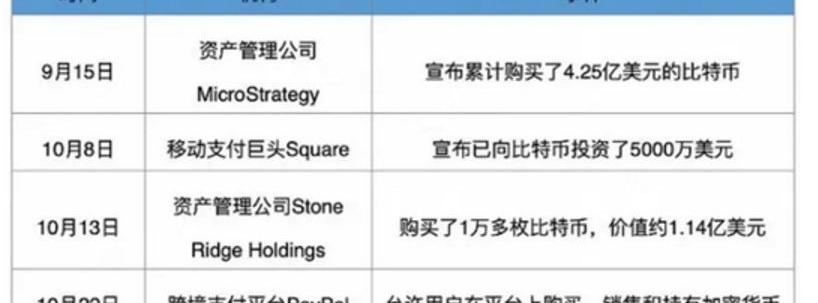 实际上这轮机构是MicroStrategy?Inc.在8月份宣布买入比特币作为主要财政储备资产开始,但是8月份虽然比特币站稳了1万美元上方,却始终没有新的突破,反到是11月以来气贯长虹的涨幅,令人直呼机构牛。
