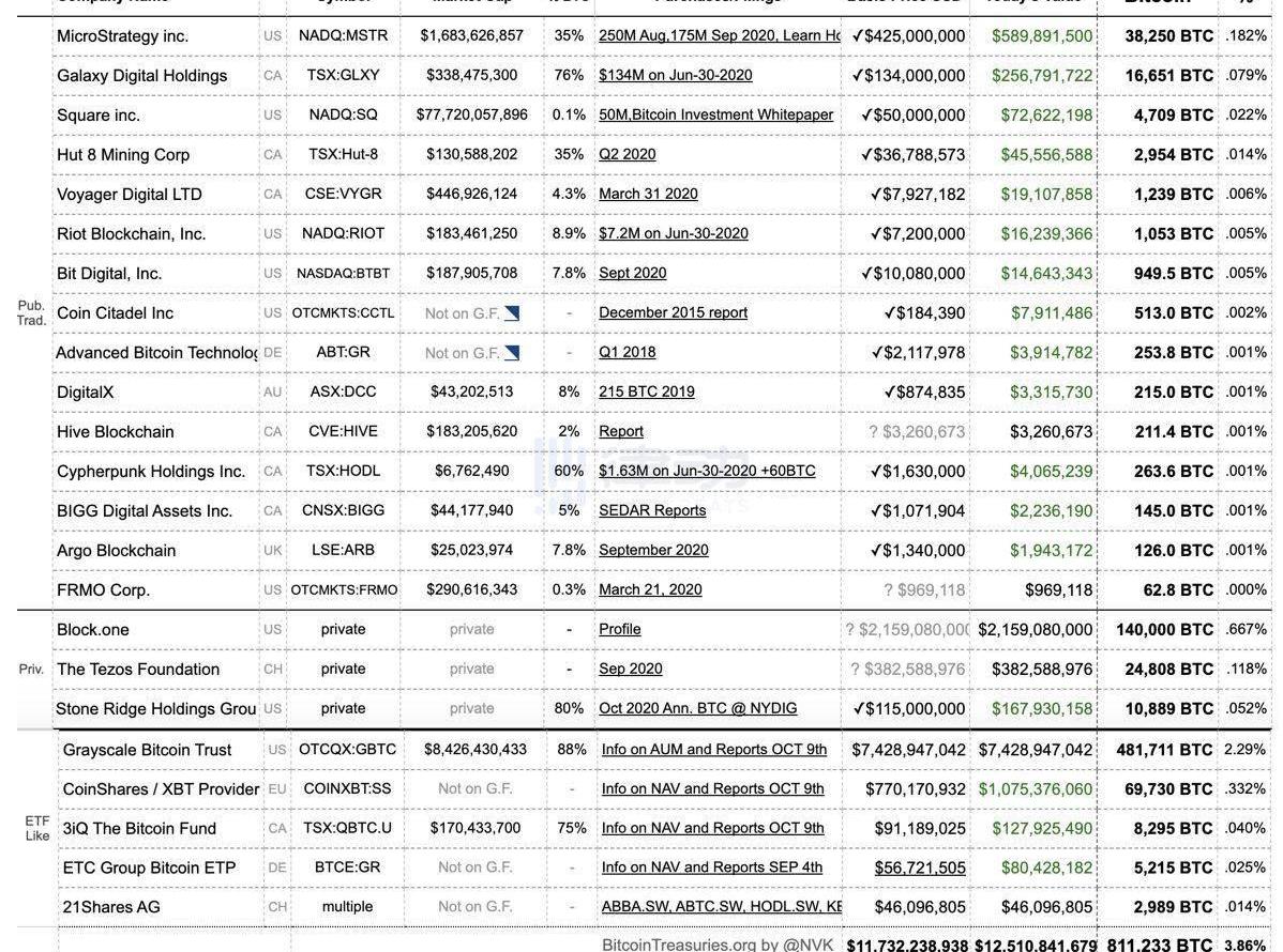 现在美国公共机构拥有的比特币就占了其市值的5%,最中MicroStrategy所占比例最大。