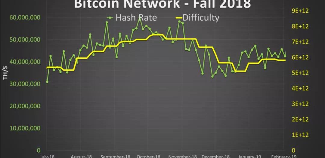 2018年秋季可能是最明显的季节性趋势,网络的难度和哈希率都在迅速下降。值得注意的是,在这段时间内,比特币价格也从历史高点下跌。很大一部分的网络,几乎一半吧,都出现了季节性脱机现象。然而,由于难度调整算法的特性,点对点网络仍在继续发展。