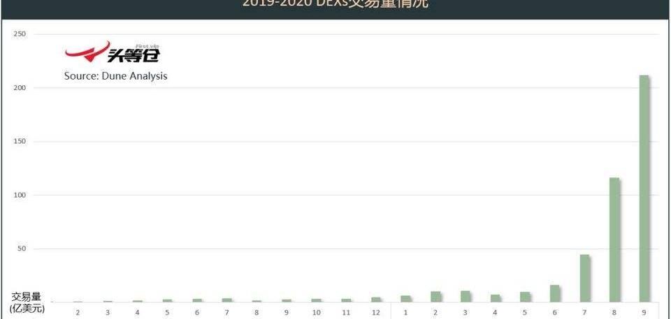 上图显示,DEX的整体交易额在9月份已经超过了200亿美元,七八九这三个月份的环比增幅分别是175%、160%和83%。虽然增速在放缓,但就数额来看,DEX展现出了其强大的潜力。