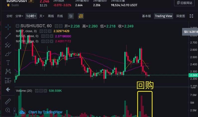 币安等中心交易所数据显示,在回购时间段内,SUSHI交易额放量猛增,伴随着价格的下跌,可以将其解读为主力出货。
