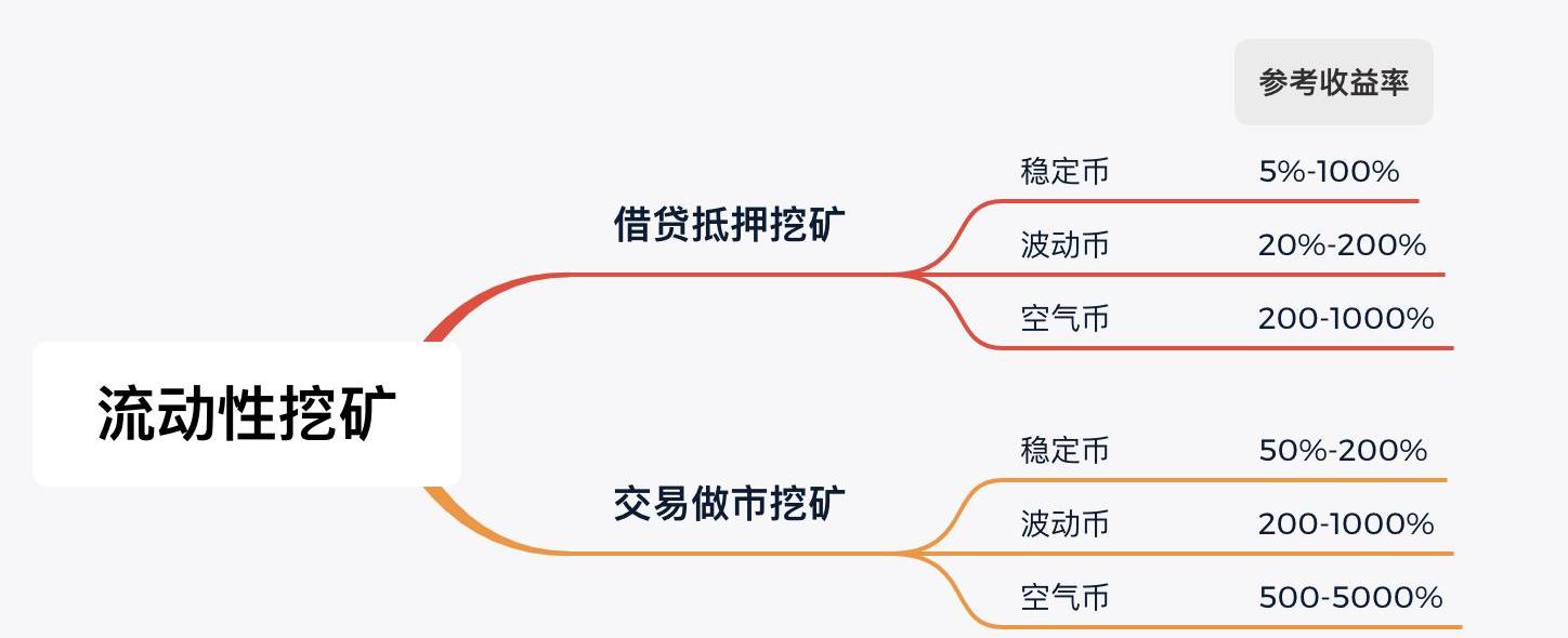 如果再将这两个大类进行细分,又可以分为稳定币、波动币与空气币挖矿。