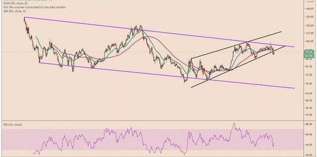 截至2020年9月的交易日,美元指数下跌了2.38%。然而,该指数在上升通道支撑附近显示出了疲软迹象,暗示它可能像其在过去25年的交易中一样,继续巩固或走低至“紫色支撑”线附近。