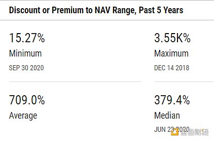 ETHE的溢价是一种长期现象,但自2020年初以来一直在加速增长。自2019年6月ETHE经FINRA批准开始交易,其溢价水平一度高达1800%,在整个2020年期间,ETHE价格对于ETH价格的溢价率维持在相当高的一个水平线上。我们可以看到,在2020年的最后一天,溢价率达到103.2%。