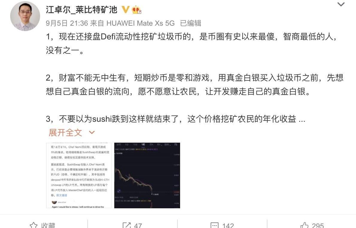 “当我看到寿司的那一刻,我意识到这是一个很有潜力的新机制,然而他的行为是令人厌恶的,不应被宽恕。期待着看到DeFi继续前进。”
