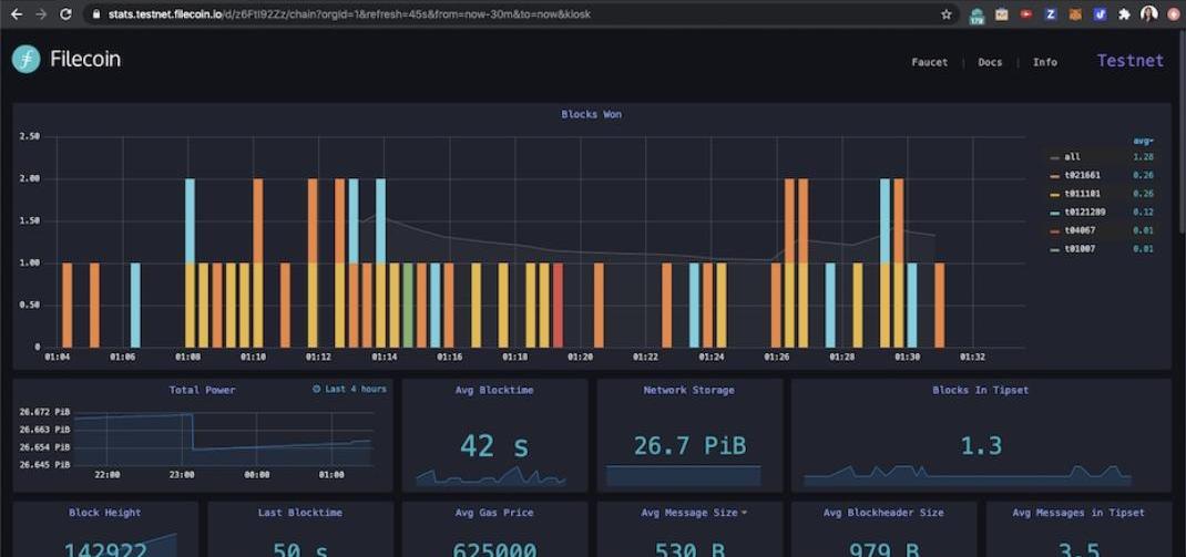 随着世界各地的矿工将PB级数据存储到Filecoin测试网上,挖矿社区继续快速发展。在过去的一个月中,它们达到了已验证存储容量>25PB的新高水准。与我们上一次路线图更新相比提高了近3倍!校准网络还看到了超快速的封装:每天超过5PB!FilecoinTestnet已于今天太平洋标准时间下午3点更新为最新的太空竞赛代码-矿工已经开始参加竞赛。