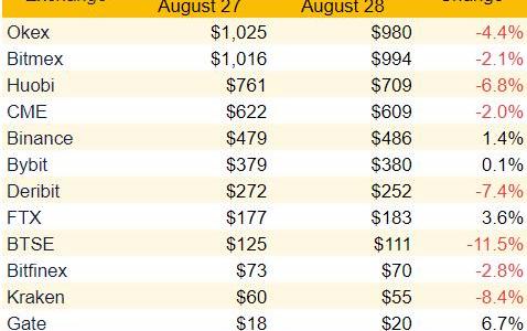 正如CoinTelegraph昨天正确预测的那样,芝加哥商品交易所(CME)最近一次的比特币期货到期无关紧要。价值约1.25亿美元的8月合约定于昨天清算,不过初步数据显示,未来几个月未展期的合约不足4000万美元。